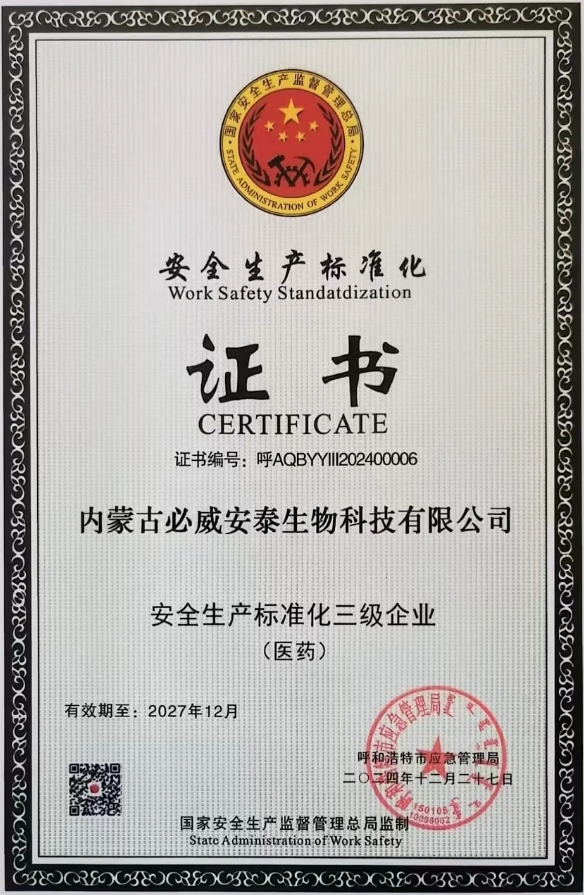 內(nèi)蒙古必威安泰生物科技有限公司成立于2008年6月,位于呼和浩特市和林格爾乳業(yè)開發(fā)區(qū),占地123畝,注冊資本1.25億元。公司專注于生物疫苗研發(fā)生產(chǎn),是原農(nóng)業(yè)部批準的首家采用細胞懸浮培養(yǎng)技術(shù)生產(chǎn)口蹄疫疫苗的企業(yè),擁有兩條7550升德國進口懸浮培養(yǎng)生產(chǎn)線,年產(chǎn)能20億毫升,覆蓋多種動物疫苗。公司被認定為自治區(qū)“企業(yè)研發(fā)中心"“重點龍頭企業(yè)單位”“企業(yè)技術(shù)中心"和國家"高新技術(shù)企業(yè)”,“口蹄疫基因標記疫苗”獲全國商業(yè)科技進步一等獎。2024年,瑞普生物控股后,公司構(gòu)建全生命周期質(zhì)量管控體系,獲多項國際權(quán)威認證,包括ISO9001、ISO14001、ISO45001、ISO5001及獸藥GMP、CNAS、GCP、GSP等。